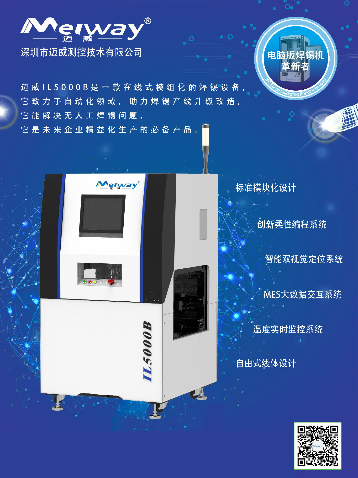 在本次展會中,邁威將展出IL5000B智能模組式在線焊錫機,它是邁威持續(xù)創(chuàng)新的成果,它將提高廣大電子產(chǎn)品制造商的核心競爭力。